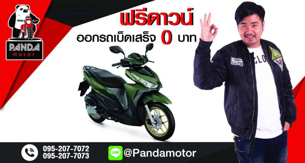 แพนด้า มอเตอร์ เป็น ร้านขายรถมอเตอร์ไซค์ ทุกยี่ห้อ ไม่ว่าคุณอยาก ออกรถมอเตอร์ไซค์ ยี่ห้อไหน รุ่นไหนอยู่ คุณติดต่อเข้ามาสอบถาม โปรโมชั่น ราคาค่างวด กับทีมงานของเราได้เลย คุณจะได้รับรถมอเตอร์ไซค์ ที่ใหม่ สดซิง จากโรงงานเจ้าของแบรนด์โดยตรง ยังไม่เคยติดแบตเตอรี่วิ่งมาก่อนแม้แต่ครั้งเดียว รถที่คุณจะได้รับ ยังไม่เคยถูกขี่โดยหญิงหรือชายใด รอคุณซึ่งเป็นเนื้อคู่มารับไปขี่เป็นคนแรก